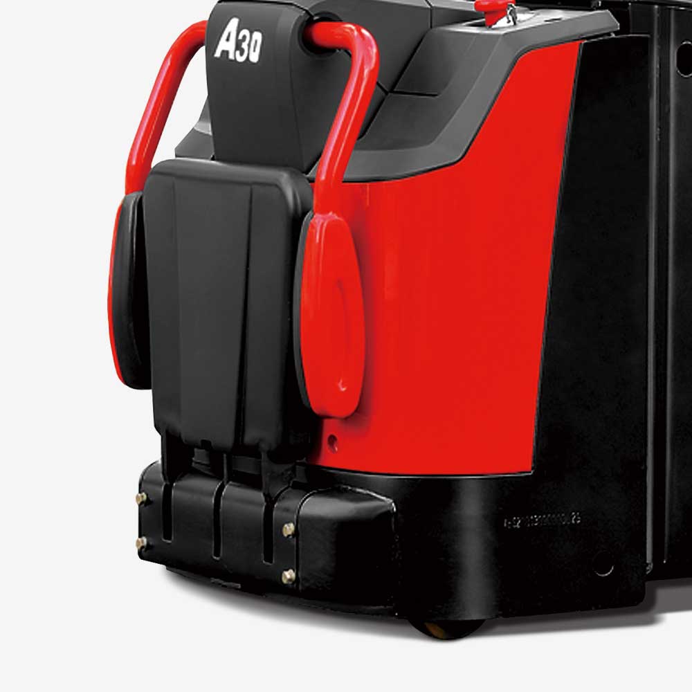 Este camión ofrece freno regenerativo y función antideslizamiento en pendientes. El tipo de conductor de pie con motor de accionamiento de alta potencia proporciona una velocidad de desplazamiento rápida y una buena capacidad de pendiente.